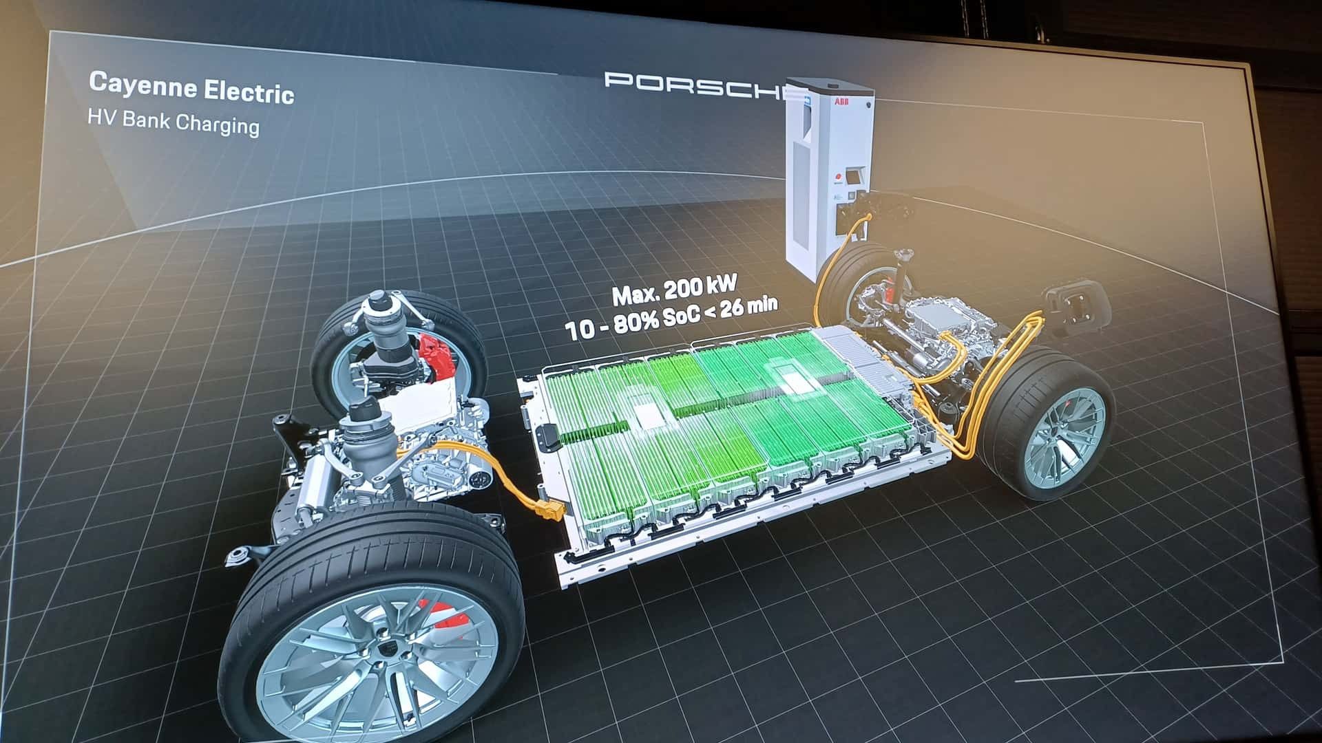 Nhờ cấu trúc và hóa học tiên tiến, Cayenne Electric có khả năng sạc nhanh ở mức công suất đỉnh lên tới 400 kW. Điều này cho phép xe bổ sung quãng đường khoảng 300 km (186 dặm theo chuẩn WLTP) chỉ trong 10 phút sạc.
