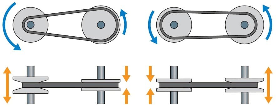 Hệ thống thủy lực sẽ điều khiển hai nửa của puly ép lại hoặc tách ra, làm thay đổi đường kính vận hành của dây đai.