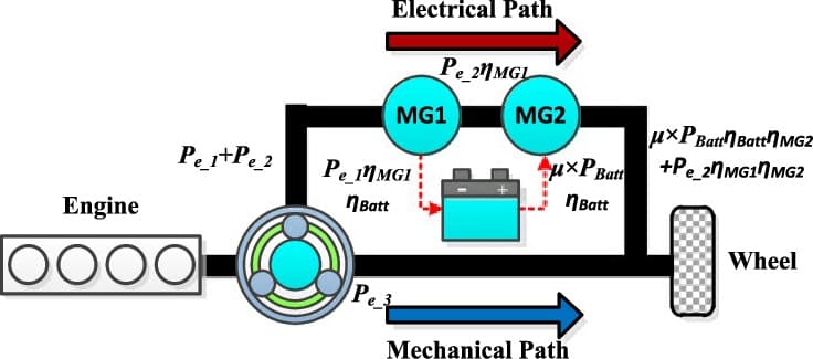 1. 72% Cơ năng: Truyền thẳng ra Ring Gear để đẩy xe.