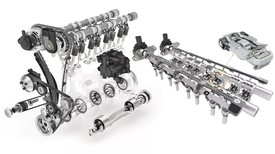 Koenigsegg đang phát triển động cơ không trục cam, không xích. Các xupap được điều khiển độc lập bằng khí nén/điện tử (Pneumatic/Electronic Actuators). Đây là đỉnh cao kỹ thuật giúp tối ưu hóa biến thiên thời điểm đóng mở van vô hạn.